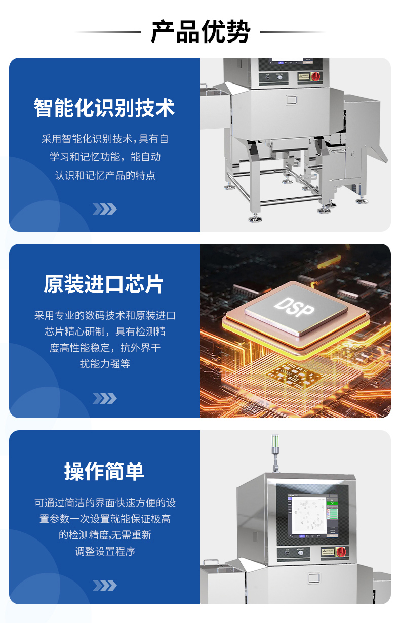 | 检测精度 | SUS 304球:Φ0.3mm 金属丝:Φ0.2×2mm 陶瓷玻璃球:Φ1.0mm 备注:最小可检测的异物尺寸与产品内物质成分、包装材料、厚度大小等参数有很大关系。在实际生产环境中,请以实际产品测试结果为准。 |