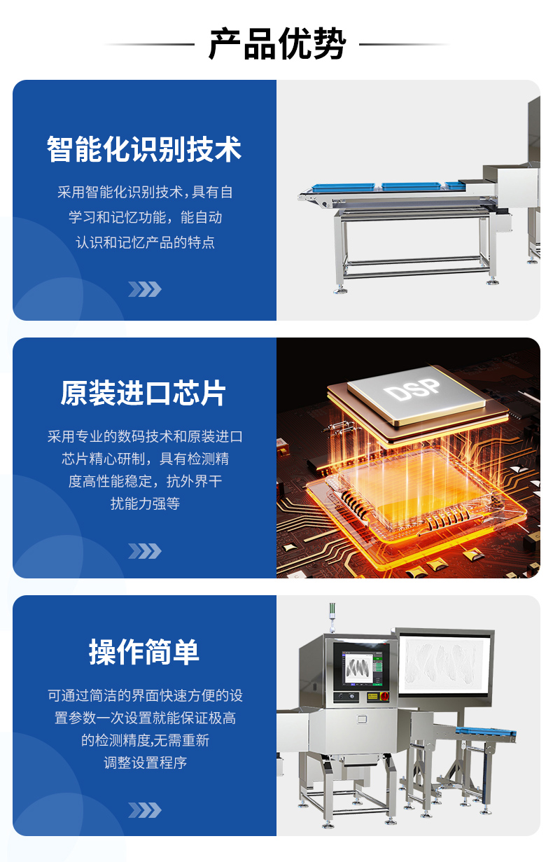 | 检测精度 | SUS 304球:Φ0.3mm 金属丝:Φ0.2×2mm 陶瓷玻璃球:Φ1.0mm 备注:最小可检测的异物尺寸与产品内物质成分、包装材料、厚度大小等参数有很大关系。在实际生产环境中,请以实际产品测试结果为准。 |