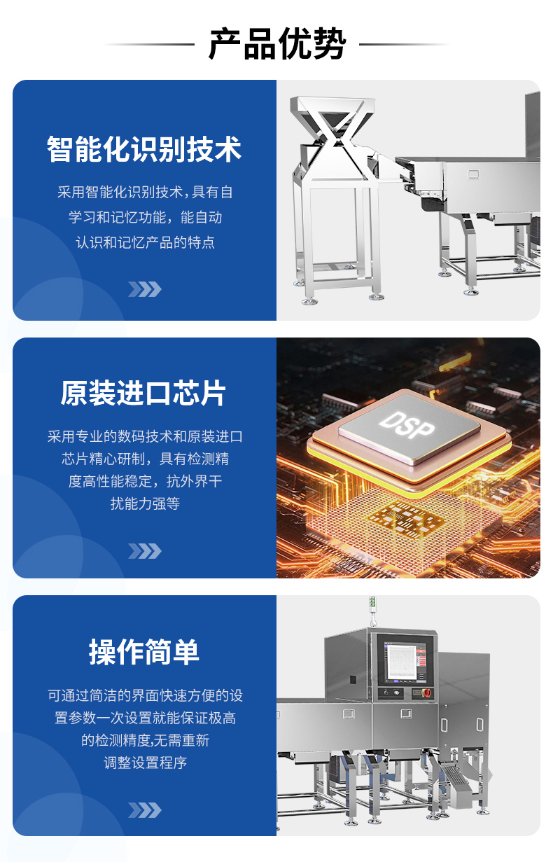 | 检测精度 | SUS 304球:Φ0.3mm 金属丝:Φ0.2×2mm 陶瓷玻璃球:Φ1.0mm 备注:最小可检测的异物尺寸与产品内物质成分、包装材料、厚度大小等参数有很大关系。在实际生产环境中,请以实际产品测试结果为准。 |