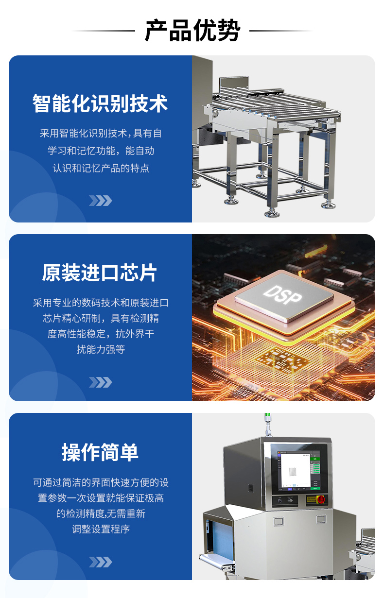 | 检测精度 | SUS 304球:Φ0.3mm 金属丝:Φ0.2×2mm 陶瓷玻璃球:Φ1.0mm 备注:最小可检测的异物尺寸与产品内物质成分、包装材料、厚度大小等参数有很大关系。在实际生产环境中,请以实际产品测试结果为准。 |