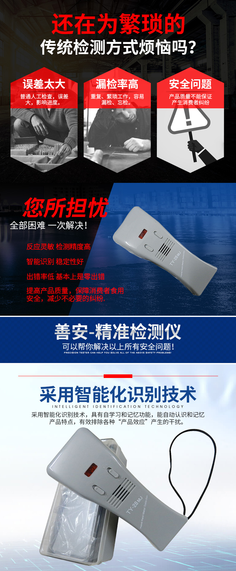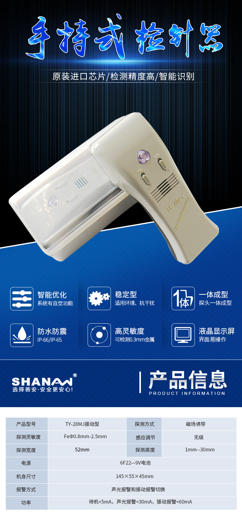 | 2 | 操作简易,轻便易携带,探知敏感度极高,最高灵敏度可以探测到直径0.5mm铁球 |